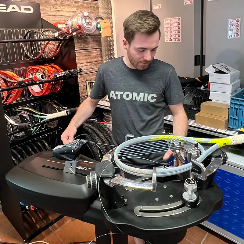 Wir machen deine Tennisschläger wieder fit für dein nächstes Match. Gib ihn bei Dieters Sportshop einfach vor Ort ab und wir übernehmen den Service.